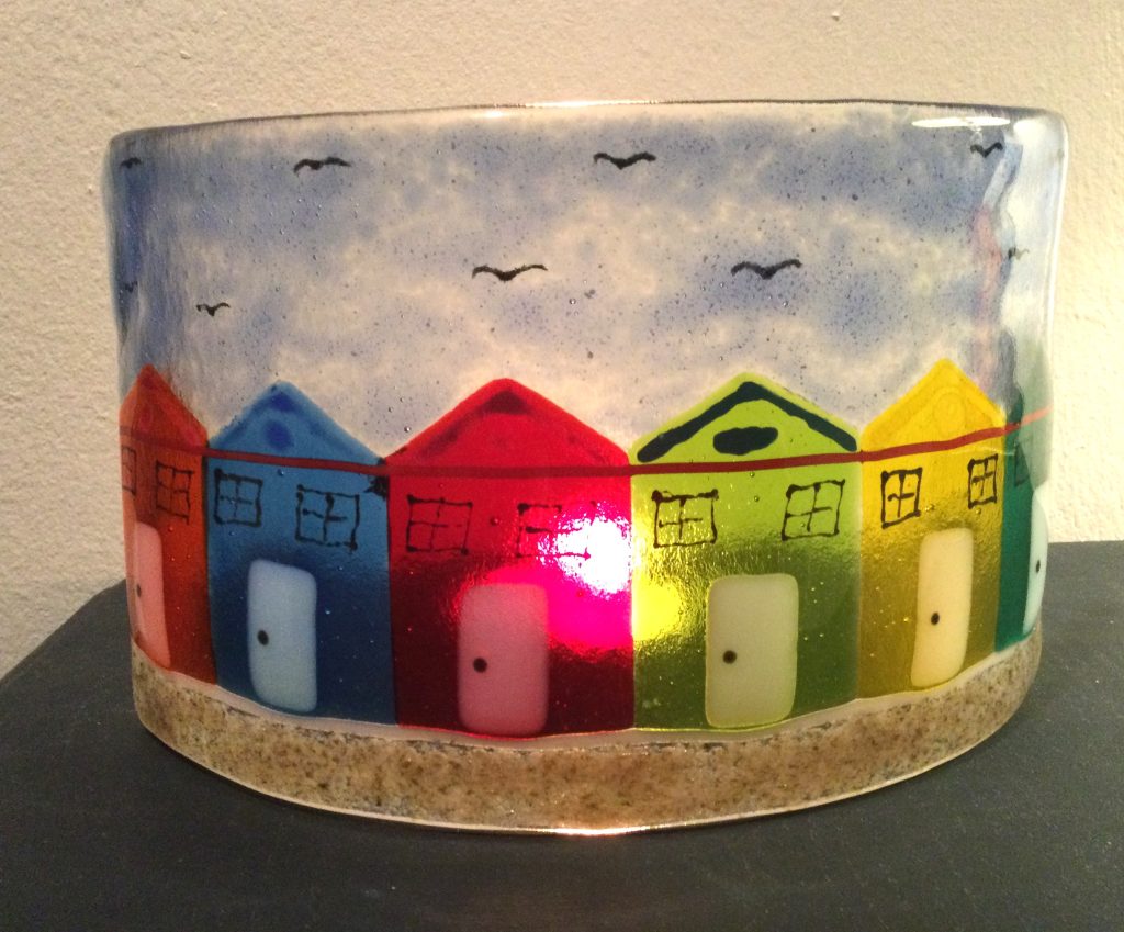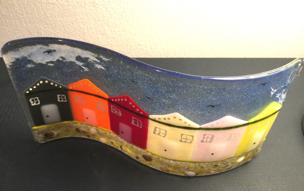 Seaside theme, 22cm x 10 cm glass slumped to a curve.